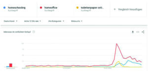 Die aktuelle Lage der Gesellschaft spiegelt sich in den Suchanfragen wider. Es wird mehr Zeit zu Hause verbracht und vermehrt online gekauft. Dieses veränderte Nutzerverhalten bietet ein großes Potenzial, sich als Unternehmen neu zu positionieren, und Chancen, sich gegenüber seinen Wettbewerbern hervorzuheben.