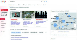 Zusätzlich gibt es oberhalb der ersten Snippets die aktuellen Schlagzeilen und Informationen der Bundesregierung oder des Robert-Koch-Instituts. Google ermöglicht dem User eine umfangreiche Auswahl verschiedener qualitätsvoller Contents direkt im Above-the-fold-Bereich und erleichtert ihm so die Informationsbeschaffung. Hier wird deutlich, dass qualitativ hochwertige Contents von Google stark bevorzugt werden und andere Inhalte mit weniger Relevanz auf den ersten Seiten keine Chance haben.