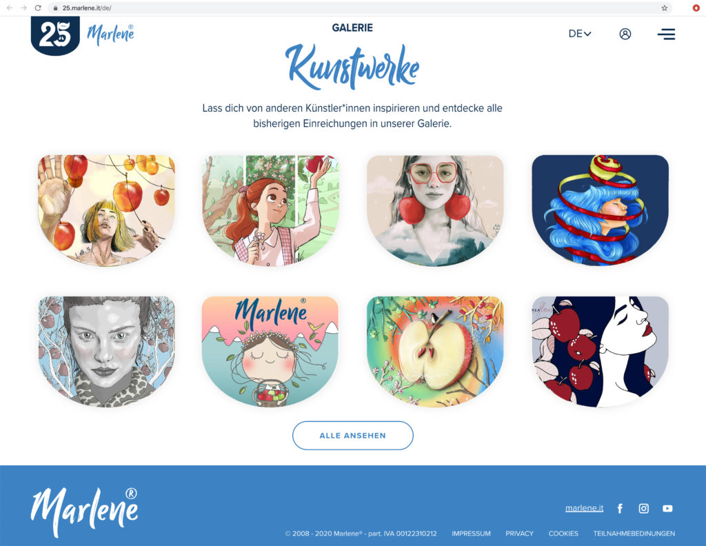 Innerhalb eines Monats gibt es bereits über eine halbe Millionen Visits und 9.200 registrierte User. Bisher wurden 4.831 Kunstwerke eingereicht. Zu sehen sind die Werke unter https://25.marlene.it