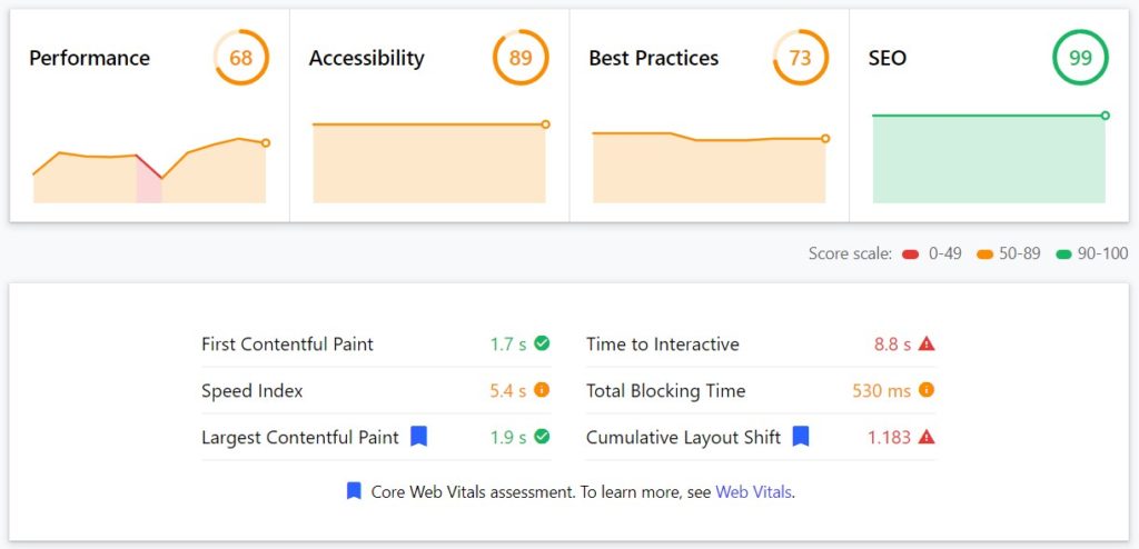 Bei der Prüfung einer Seite führt Lighthouse eine Flut von Tests einer Seite durch und erstellt dann einen Bericht darüber, wie gut die Seite abgeschnitten hat. Von hier aus können fehlgeschlagenen Tests als Indikatoren dafür verwendet werden, was zu tun ist, um die Core Web Vitals zu verbessern.
