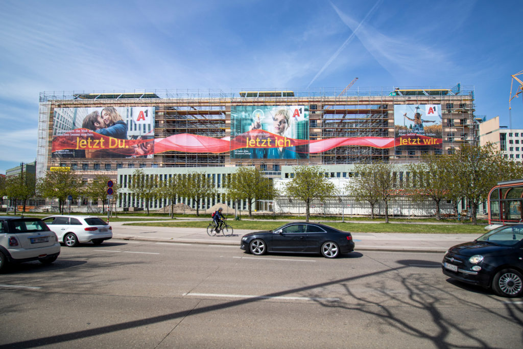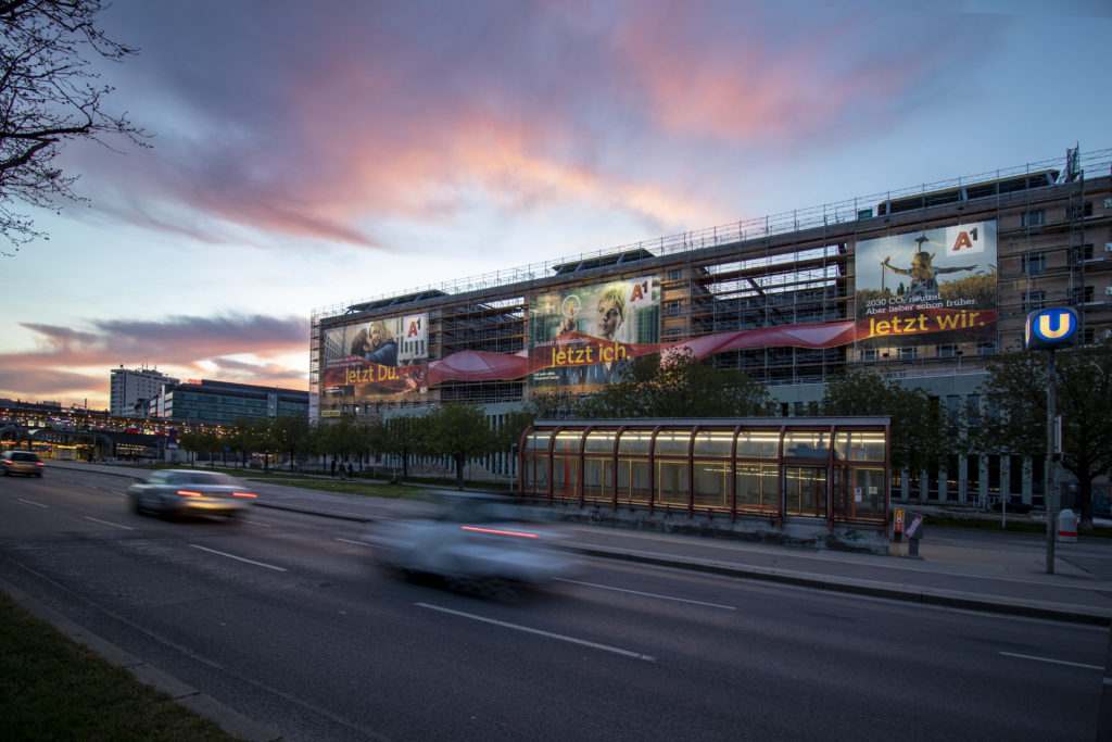 Am neuen und reichweitenstarken Gerüstwerbestandort am Wiener Praterstern, wird ein werblicher Eyecatcher für A1 in Szene gesetzt. Über drei beleuchtete großflächige Sujets hinweg, kommt eine Formatsprengung zum Einsatz, die A1 als First Mover an diesem Standort Tag und Nacht maximale Aufmerksamkeit garantiert.