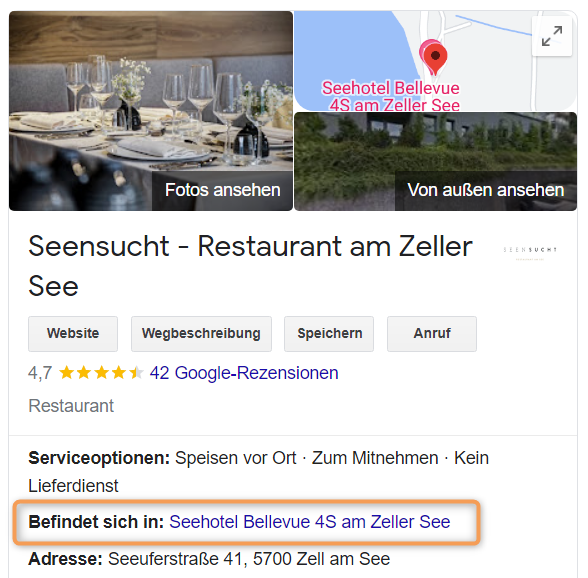 Aufgrund der prominenten und auffälligen Platzierung hat der Business Eintrag eine hohe Aufmerksamkeit der Suchenden. Ein Lokaler Unternehmenseintrag unterstützt Google dabei die lokale Zuordnung der dazugehörigen Webseite zu präzisieren und zu verifizieren. Das Unternehmen / den Standort gibt es wirklich.