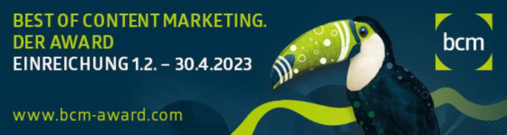 Der Best of Content Marketing Award (BCM) ist der Award, der aus allen relevanten Arbeiten der inhaltsgetriebenen Kommunikation im deutsch- sprachigen Raum die Besten der Besten auf die Bühne hebt. Als einziger Award stellt er in der Jurierung konsequent die Inhalte in den Fokus. Der Juryprozess und die Bewertungskriterien sind transparent. Über die Preisvergabe in den 37 ausgeschriebenen Kategorien entscheiden Fach- jurys mit insgesamt etwa 200 Juror:innen. Die Einreicher:innen bekommen ein hochwertiges Feedback zu ihren Arbeiten.